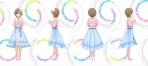 | アイドルのお仕事ってよく分からないけれど、いろんな所に行ったりするんでしょう? 私、旅行とか好きなのよねぇ。いろんな所に連れて行ってくださいねぇ、プロデューサー。 | |||||