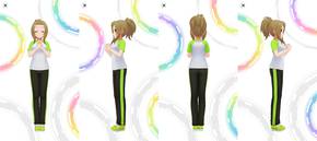| イッチニー、サーンシッ! そう、その調子! 水泳前のストレッチは念入りに! うっすら汗をかくぐらいに! おっ、xプロデューサー、良く伸びてますね~☆次は脚を重点的に。大丈夫、プールは逃げませんっ | |||||