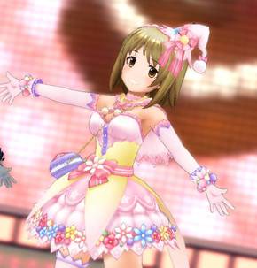 | xさん、はじめまして、三村かな子です。私なんて何の取り柄もないのに、本当にアイドルになれちゃうんですか…? ちょっと信じられないけど…でも、信じてみます…! | |||||