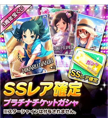 期間:2018/9/18 15:00〜2030/9/30 14:59 SSレアのアイドルを必ずGET!!※アイドルの所属上限を超える場合、プレゼントに送られます。※登場するアイドルが変更になることはありません レア度別提供割合 SSレアアイドル 100% Sレアアイドル 0% レアアイドル 0% スタージュエルテーブル ▲
