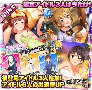 期間限定アイドルが登場 ! 10連ガシャはSレア以上のアイドル1人が確定で出現 ! !※アイドルの所属上限を超える場合、プレゼントに送られます。