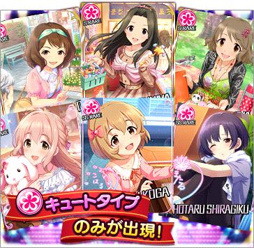 期間:2018/4/16 15:00〜2018/4/17 14:59 キュートタイプのみ登場 ! 10連ガシャはSレア以上のアイドル1人が確定で出現 ! ! ※アイドルの所属上限を超える場合、プレゼントに送られます。 レア度別提供割合 SSレアアイドル 3% Sレアアイドル 12% レアアイドル 85% スタージュエルテーブル ▲