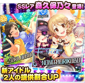 新SSレア森久保乃々登場 ! 10連ガシャはSレア以上のアイドル1人が確定で出現 ! ! ※アイドルの所属上限を超える場合、プレゼントに送られます。