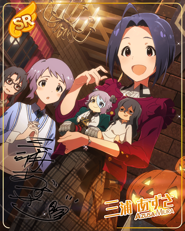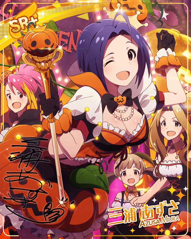 カード情報(クイーン・オブ・ランタン 三浦 あずさ) 覚醒前 覚醒後 ライフ ボーカル ダンス ビジュアル 最大 35 5386 4170 2934 覚醒最大 35 6283 4864 3424 マスターランク4 35 7035 5448 3836 センター効果 Angelハーモニー Angelタイプのボーカル値が60%アップ スキル効果(Lv最大時) クイーンズ・カーニバル 9秒ごとに40%の確率で5秒間、Perfectのスコアが26%アップ コメント カード一覧 おとなのお花見 ウォータードリーム 極上のシルエット 白銀のドレス ハッピーブレイクタイム BIRTH BRAND NEW PERFORMANCE 眩惑の水面 フローズン・クリスタル 制服シリーズ UNI-ONAIR 哀しみの魔女 私だけの運命を探して ARCANA CHALLENGE FOR GLOW-RY DAYS 迷子の特等席 MILLION LIVE CLOSET! 嘆きのFRACTION 聖ミリオン女学園 静寂のワンショット 秘密の花園 Reach 4 the Dream! 甘美な美貌 産声の中で 夏服シリーズ MILLION LIVE CONFERENCE! 私たちのRainbow 人波に魅せつけて 耳としっぽシリーズ Beyond A Crossing! ほろ酔いに見た夢 MILLION LIVE CLOSET! Reburn Raise a Good Sign C-A-M-P-A-I♡ ミリカン!アンコール ラ♥ブ♥リ♥ モンスターっ娘シリーズ ミリアニセレクション 7Days Smile ぷかぷかフロート ラウンドワン2024 コンセプト★コスチュームシリーズ 悪戯ゴーストに成敗を! ver.AM CAMPAI♡NIGHT HUB bye, きらめく世界 Mythmaker 超々∞MUGENDAI SPECIAL SOLO RECORDS クイーン・オブ・ランタン 関連画像 2018年バレンタインデー公式ツイート 2019年エイプリルミニゲーム ココスコラボ 2020年エイプリルフールネタ 2020年エイプリルフールネタ 2021年ミリシタ4周年カウントダウン(1日前) イベントSD #2 イベントSD #3 イベントSD #4 イベントSD #4 2022年エイプリルフールネタ イベントSD #5 イベントSD #7 イベントSD #8 イベントSD #338