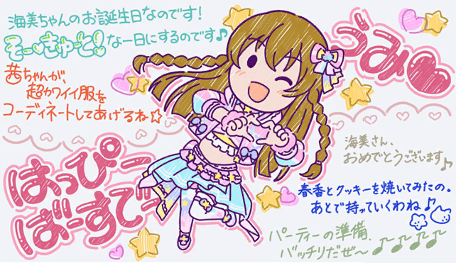 高坂 海美 #1 #2 #3 #4 #5 #6 #7 #8 #9 #10 #11 #12 #13 #14 #15 #16 #1 #2 #3 #4 #5 #6 #7 #8 #9 SRサイン SSRサイン ネーム なまえこうさか うみ タイプPRINCESS 身長155cm 体重45kg 血液型O型 年齢16歳 誕生日8月10日(獅子座) 利き手右利き スリーサイズ82 / 57 / 84 出身地千葉県 趣味ボルダリング 特技常人にできないポージングができる 好きなものダンス CV上田麗奈 所属765プロダクション オフショット 4コマ 劇場ホワイトボード ログインボーナス落書