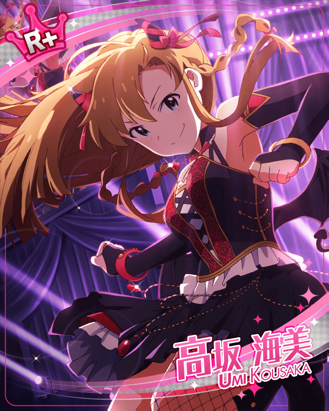 高坂 海美 #1 #2 #3 #4 #5 #6 #7 #8 #9 #10 #11 #12 #13 #14 #15 #16 #1 #2 #3 #4 #5 #6 #7 #8 #9 SRサイン SSRサイン ネーム なまえこうさか うみ タイプPRINCESS 身長155cm 体重45kg 血液型O型 年齢16歳 誕生日8月10日(獅子座) 利き手右利き スリーサイズ82 / 57 / 84 出身地千葉県 趣味ボルダリング 特技常人にできないポージングができる 好きなものダンス CV上田麗奈 所属765プロダクション オフショット 4コマ 劇場ホワイトボード ログインボーナス落書