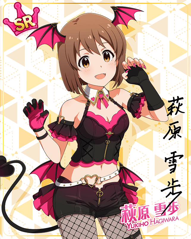 カード情報(もんすたーっ娘・めたもる!シリーズ 萩原 雪歩) 覚醒前 覚醒後 手に入る衣装 入手時 ライフ ボーカル ダンス ビジュアル 最大 35 4168 2934 5386 覚醒最大 35 4862 3424 6284 マスターランク4 35 5446 3836 7040 センター効果 Princessテクニック Princessタイプのスキル発動率が20%アップ スキル効果(Lv最大時) 実は…でして… 9秒ごとに35%の確率で3秒間、Great/GoodをPerfectにする コメント あの、悪魔って、怖い顔をしてるイメージだったんですけど、もしかしたら優しい顔の悪魔もいるんでしょうか?想像したら……♪ うう……なんだか、もっと怖くなってきちゃいましたぁ……。 カード一覧 天使の目覚め シークレットライブ! 星降る聖夜 フレッシュスマイル おひさまスマイル BRAND NEW PERFORMANCE 闇を支配する者 小さなスノードロップ なごみのお茶 UNI-ONAIR 祈りを託して Xs ブランニュー・シーナリー 制服シリーズ CHALLENGE FOR GLOW-RY DAYS ウサギたちの夜 彼方へ届けるpersona voice MILLION LIVE CLOSET! 満開のステージ Reach 4 the Dream! 無邪気なメカニック 真夏に光るダイヤ☆ 妖しい視線 夏服シリーズ Impervious Resolution MILLION LIVE CONFERENCE! 私たちのRainbow Tender memories ver.YH Beyond A Crossing! 春一番の風が吹く! ヒーリング・ライト キミに会いたいから Raise a Good Sign 耳としっぽシリーズ MILLION LIVE CLOSET! Reburn ドキドキ撮影タイム ALRIGHT* スイートレディのカフェタイム ミリアニセレクション モンスターっ娘シリーズ 雨に喜ぶ花手水 7Days Smile おしおき堕天使 ミリカン!アンコール ステラ サプライズプレゼント 成田ゆめ牧場コラボ Kosmos, Cosmos コンセプト★コスチュームシリーズ 超々∞MUGENDAI 向日葵さんぽ道 うさふわ Dreamy!POP UP SHOP もふもふチェンジ!シリーズ そしてふたりはひとつに PIZZA-LA 雪夜に咲く花 SPECIAL SOLO RECORDS 大忘年会×新年会 in KOTOBUKIY@ 消えないチョークで愛言葉 もんすたーっ娘・めたもる!シリーズ POP UP in 松屋浅草 関連画像 2018年バレンタインデー公式ツイート 2020年エイプリルフールネタ 2020年エイプリルフールネタ 2020年バレンタインデー 2021年ミリシタ4周年カウントダウン(1日前) 2021年ミリシタ4周年トップ画面 ユニットトークイメージ(2021-07-29~) ユニットトークイメージ(2021-07-29~) イベントSD 2022年エイプリルフールネタ ミリオンライブ10周年記念トップ画面 イベントSD #7 イベントSD #8 イベントSD #358 アイドルマスター×成田ゆめ牧場 みんなとすごす成田ゆめ牧場 ~穴掘りの頂点を目指しますぅ!~ イベントSD #383 イベントSD #399