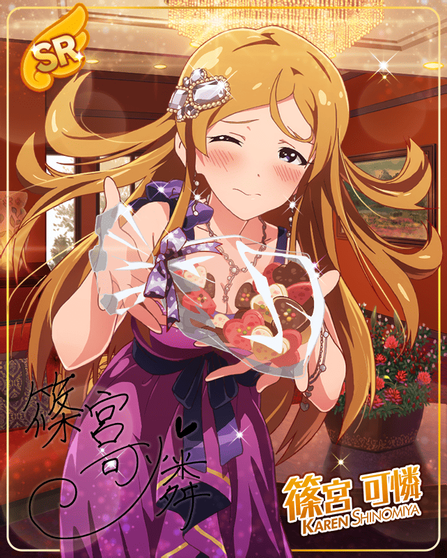 篠宮 可憐 #1 #2 #3 #4 #5 #6 #7 #8 #9 #10 #11 #12 #13 #14 #15 #16 #1 #2 #3 #4 #5 #6 #7 #8 SRサイン SSRサイン ネーム なまえしのみや かれん タイプANGEL 身長159cm 体重48kg 血液型AB型 年齢16歳 誕生日8月27日(乙女座) 利き手右利き スリーサイズ90 / 59 / 90 出身地東京都 趣味アロマテラピー 特技ポーカーフェイス 好きなものお風呂 CV近藤唯 所属765プロダクション オフショット 4コマ 劇場ホワイトボード ログインボーナス落書