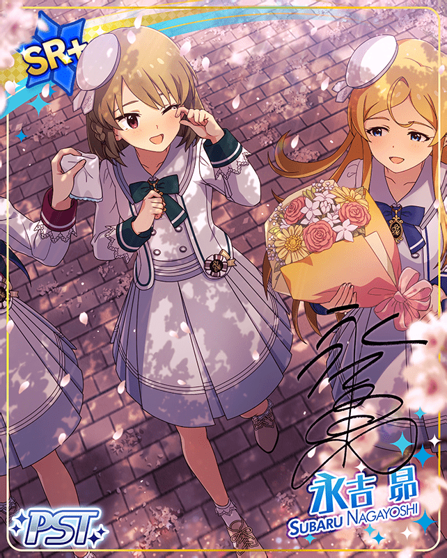 永吉 昴 #1 #2 #3 #4 #5 #6 #7 #8 #9 #10 #11 #12 #13 #14 #15 #16 #17 #1 #2 #3 #4 #5 #6 #7 #8 SRサイン SSRサイン ネーム なまえながよし すばる タイプFAIRY 身長154cm 体重41kg 血液型B型 年齢15歳 誕生日9月20日(乙女座) 利き手左利き スリーサイズ79 / 59 / 78 出身地東京都 趣味野球 特技変化球 好きなものアイドル CV斉藤佑圭 所属765プロダクション オフショット 4コマ 劇場ホワイトボード ログインボーナス落書