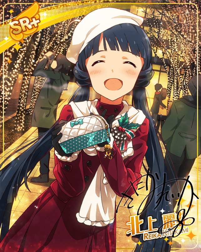 カード情報(頼れるプレゼント 北上 麗花) 覚醒前 覚醒後 ライフ ボーカル ダンス ビジュアル 最大 35 5386 4168 2934 覚醒最大 35 6284 4862 3424 マスターランク4 35 7040 5446 3836 センター効果 Angelハーモニー Angelタイプのボーカル値が60%アップ スキル効果(Lv最大時) バッグも入れちゃえ~! 11秒ごとに40%の確率で6秒間、Perfectのスコアが26%アップ コメント カード一覧 熟睡ガール 無邪気な音色 パッチリ獅子舞娘 爽やかな風に誘われて BRAND NEW PERFORMANCE BlueMoon Harmony! ハッピー・ホーリーナイト スプリングビューティー 制服シリーズ UNI-ONAIR サンセットビーチ 魅裏怨 アクアリウス パワフルレッド・ステージ 新人マドンナ教師 CHALLENGE FOR GLOW-RY DAYS ずっと、一緒… TRICK&TREAT よーい、どっかーん! RED ZONE!!!! MILLION LIVE CLOSET! 在るが儘に Reach 4 the Dream! 準備万端! 本日のお相手は 凧あげ迷人 ハートのお好み焼き 空に手が触れる場所 夏服シリーズ 私たちのRainbow とびきり素敵な夜 怪盗たちの攻防戦 ver.RK MILLION LIVE CONFERENCE! 耳としっぽシリーズ Beyond A Crossing! うきうきチェーン grid m@rch festival 2nd MILLION LIVE CLOSET! Reburn Raise a Good Sign FIND YOUR WIND! パンの宴 生き残りゲーム<地味な大学生> モンスターっ娘シリーズ FANTASTIC NIGHT HUB MILLIONSTARS Team7th ミリアニセレクション 日本一までレッツゴ~! 7Days Smile ミリカン!アンコール うきうき南国ドライブ STARDOM ROAD[Ⅶ] サマ☆トリ ~Summer trip~ CAMPAI♡NIGHT HUB コンセプト★コスチュームシリーズ 超々∞MUGENDAI ナチュラルブレイカー 一口食べたら両想い もふもふチェンジ!シリーズ Symphonic Chiffon POP UP SHOP 頼れるプレゼント 関連画像 2018年バレンタインデー公式ツイート 2018年エイプリルミニゲーム 2018年ミリシタ感謝祭 2020年エイプリルフールネタ 2020年エイプリルフールネタ ミニゲーム 4らぐ めいくあっぷ! 2022年バレンタインデートップ画面 2022年エイプリルフールネタ イベントSD #2 イベントSD #3 イベントSD #4 2022年ミリシタ5周年カウントダウン(1日前) イベントSD #5 イベントSD #7 イベントSD #10 イベントSD #362 2025年ホワイトデートップ画面 イベントSD #379 2025年ミリシタ8周年カウントダウン(2日前)