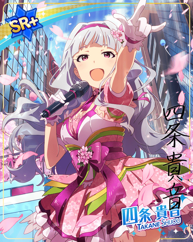 カード情報(満開に心踊らせて 四条 貴音) 覚醒前 覚醒後 ライフ ボーカル ダンス ビジュアル 最大 35 4170 2934 5386 覚醒最大 35 4864 3422 6284 マスターランク4 35 5448 3834 7040 センター効果 Fairyテクニック Fairyタイプのスキル発動率が20%アップ スキル効果(Lv最大時) 花びら彩るパレード 11秒ごとに35%の確率で4秒間、Great/GoodをPerfectにする コメント カード一覧 望郷の想い 優雅なひととき 水面に浮かぶ月 スノーファンタジーナイト セクシー魔女っ娘 麗しきエルディスト BRAND NEW PERFORMANCE 月のごとく輝く UNI-ONAIR 制服シリーズ 私のお気に入り 夜空に瞬いて 可愛い挑戦状 エレガント・リング CHALLENGE FOR GLOW-RY DAYS フラワーガール EVERYDAY WAVE!! MILLION LIVE CLOSET! Reach 4 the Dream! BRIGHT DIAMOND 聖なる夜は長く、深く 夏服シリーズ ショコラステージ 2人だけの春宵 MILLION LIVE CONFERENCE! 私たちのRainbow 怪盗たちの攻防戦 ver.TS 落葉の秋景色 耳としっぽシリーズ おとぎの国の物語[偉大なる魔法使い] Beyond A Crossing! addicted MILLION LIVE CLOSET! Reburn Raise a Good Sign 現代伝奇ホラー<医師> いざ実食! ミリカン!アンコール 新宿マルイ メン モンスターっ娘シリーズ ミリアニセレクション 7Days Smile ミリオンライブ野郎ラーメン はにかみ帰り道 淡く、霞かかる月 ステラ コンセプト★コスチュームシリーズ もふもふチェンジ!シリーズ CAMPAI♡NIGHT HUB One Day 体験 超々∞MUGENDAI 秘密の約束 紅のひとりごと PIZZA-LA 大忘年会×新年会 in KOTOBUKIY@ ダウンタウンガールシリーズ SPECIAL SOLO RECORDS 果てなき世界に夢見る妖精 満開に心踊らせて 関連画像 2018年バレンタインデー公式ツイート 2019年エイプリルミニゲーム ココスコラボ 2020年エイプリルフールネタ 2020年エイプリルフールネタ 3周年TOP画面 2021年ミリシタ4周年カウントダウン(3日前) 2021年ミリシタ4周年トップ画面 ユニットトークイメージ(2021-07-29~) ユニットトークイメージ(2021-07-29~) イベントSD 2022年エイプリルフールネタ イベントSD #6 2023年ホワイトデートップ画面 イベントSD #7 イベントSD #8 イベントSD #358 イベントSD #419